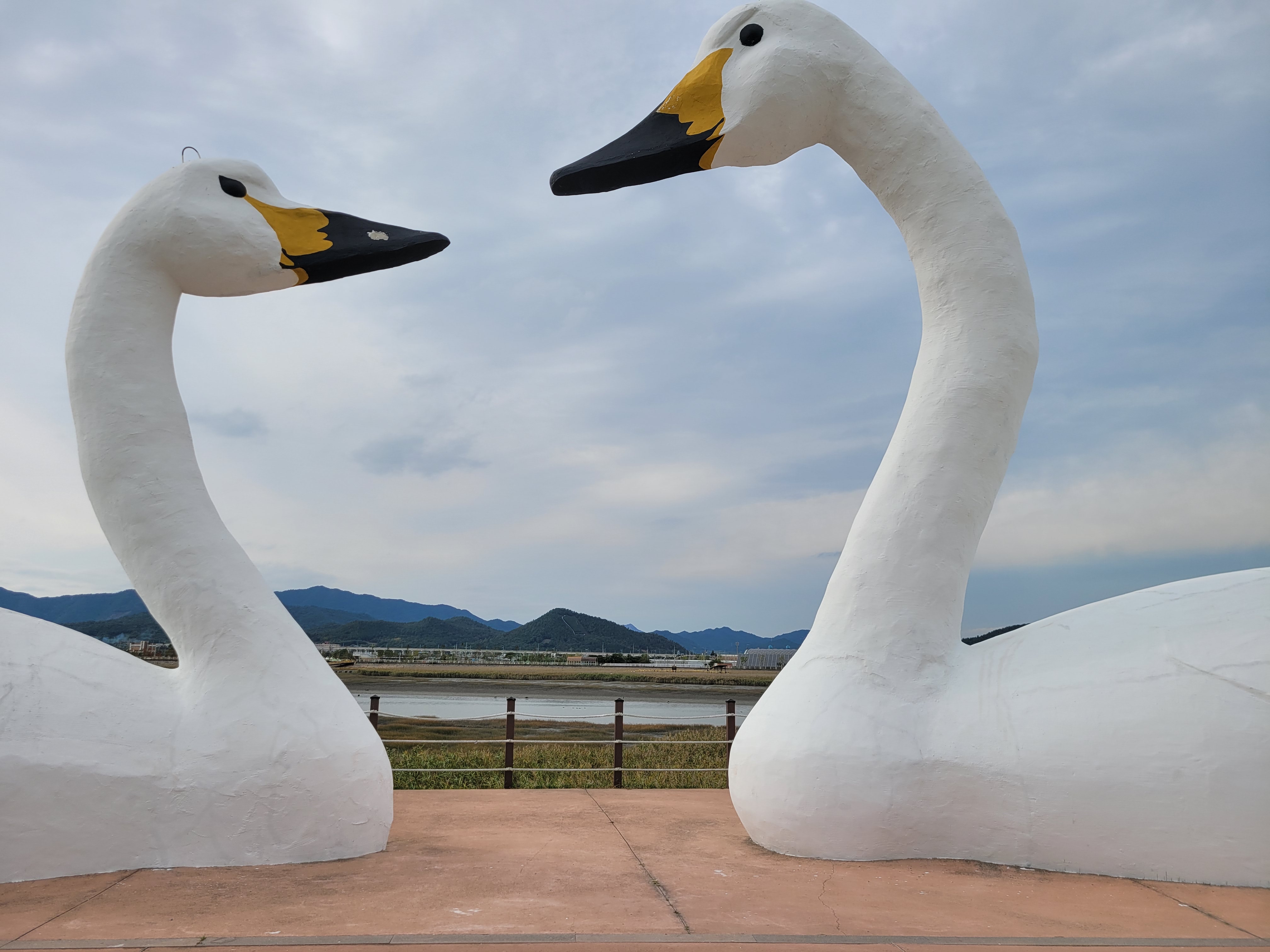 넓은 갈대밭을 이용해서 둘레길도 만들고 둘레길에는 학의 조형물이 많다