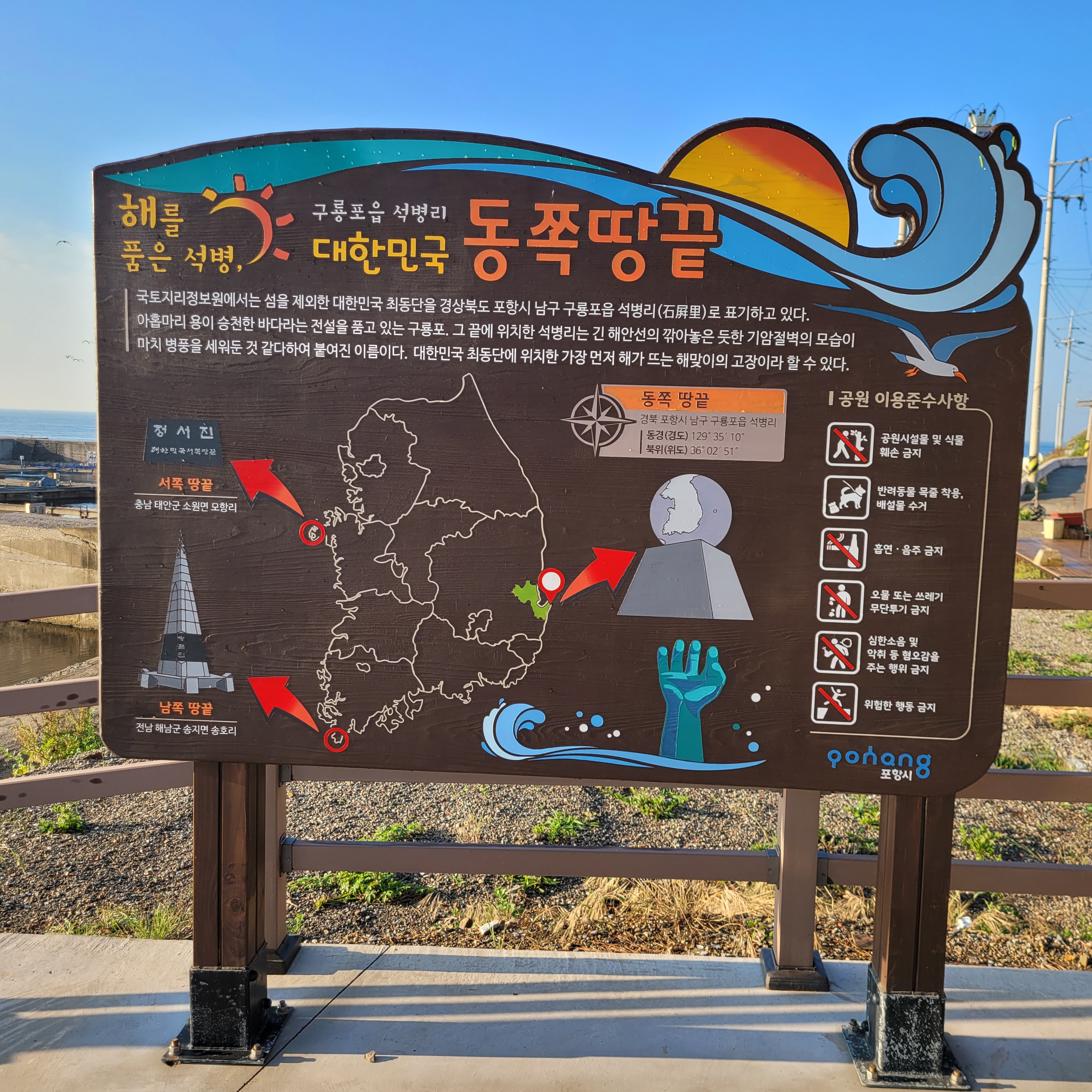 구룡포 해수욕장도 지나고 석병리에는 정동진 땅끝비도 볼수 있다