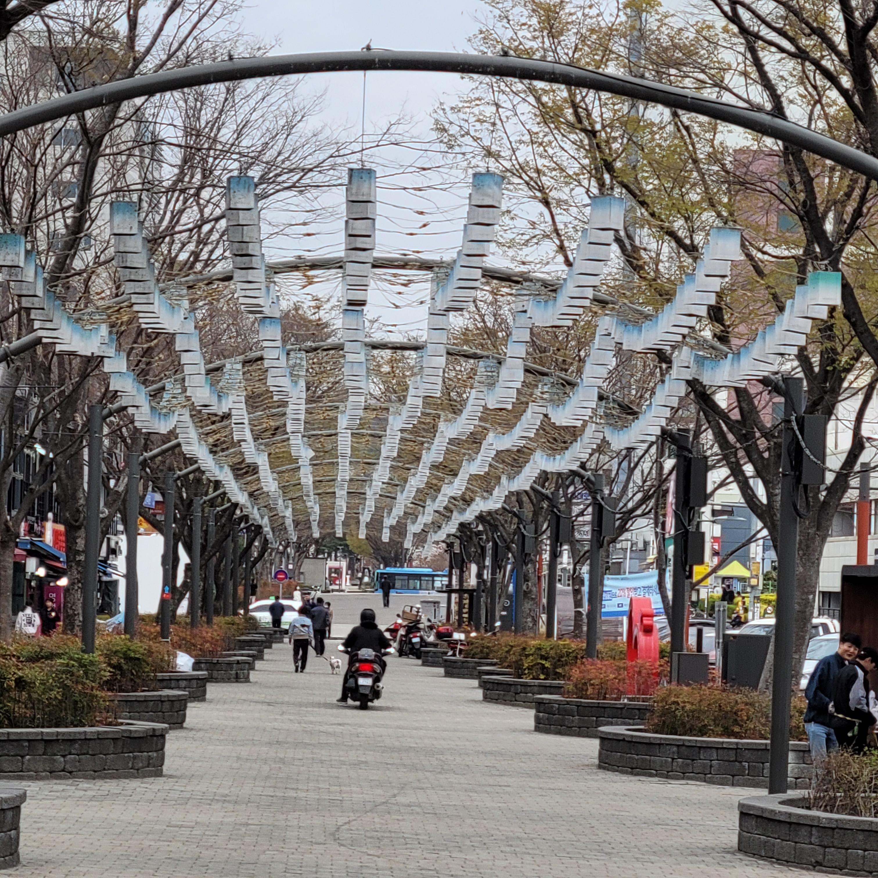 봄을 맞은 강릉 시내는 화려한 장식물과 많은 사람들이 오가는 활기찬