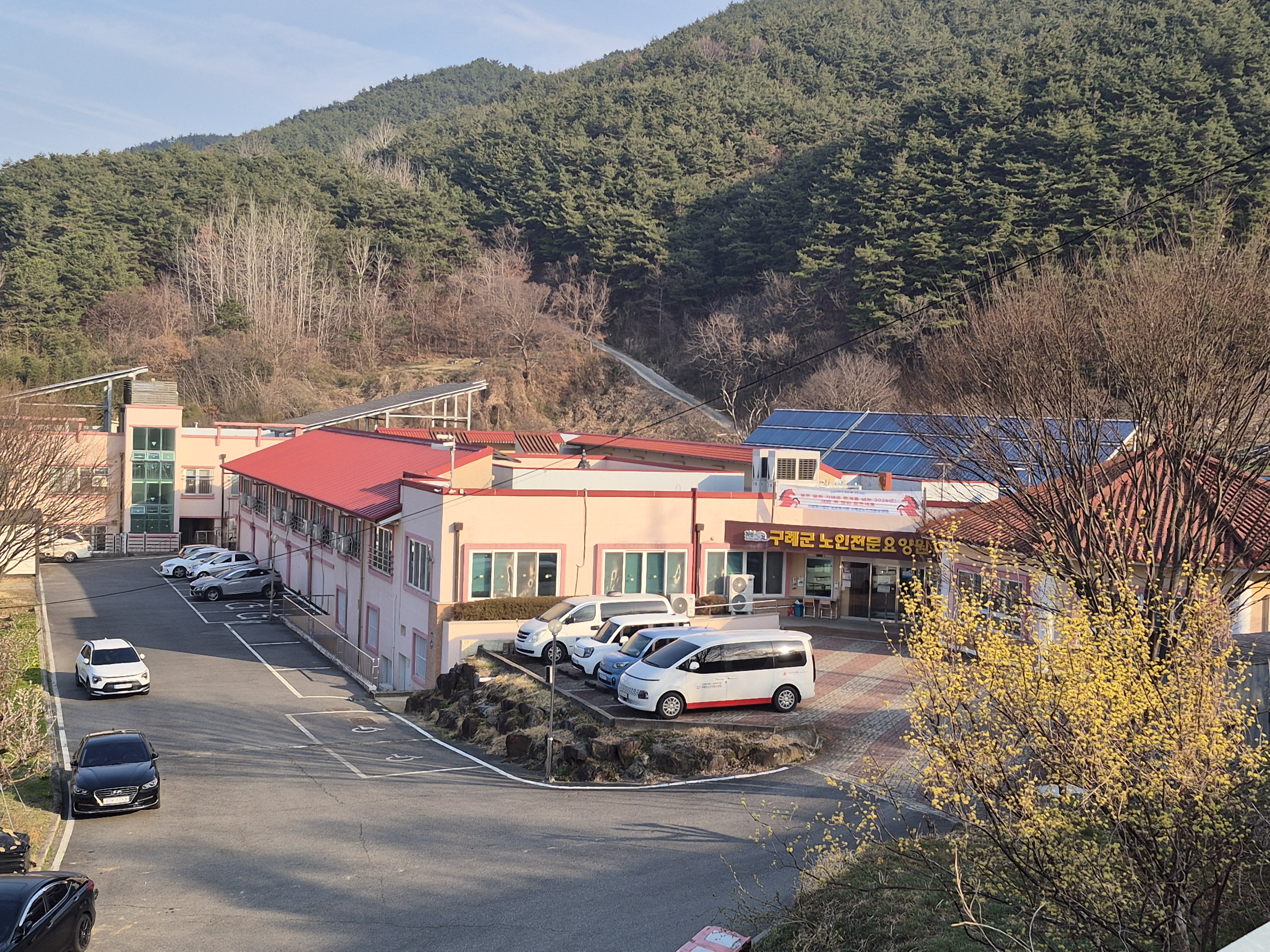 걷는 코스인데 산 중턱에 자리한 구례 노인요양원을 지나면 잠시 임도가 이어지고