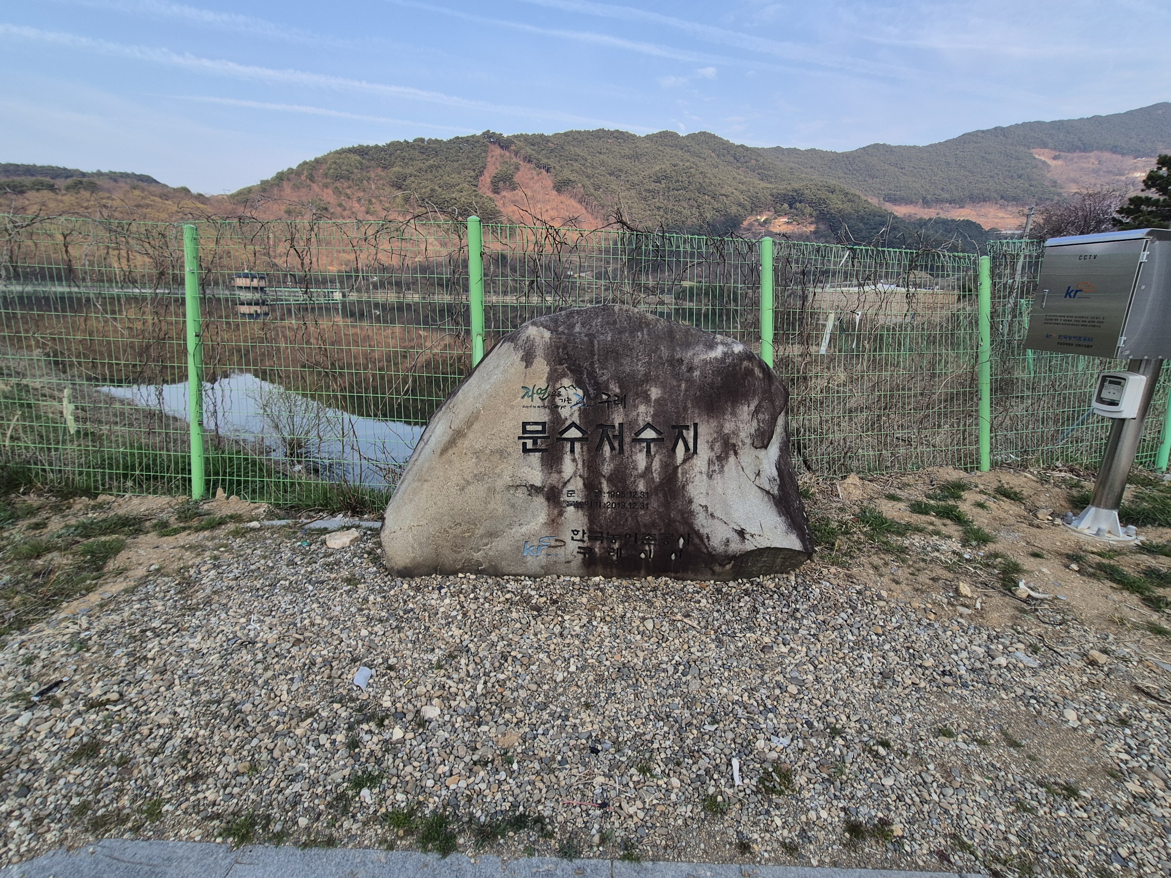 도착을 하니 종점 표식이 보이고 길을 건너면 가탄까지 가는 16코스의 길이 시작된다